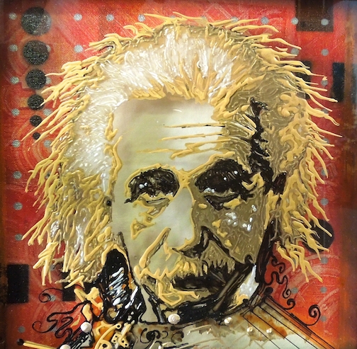 Pinting: Mix media Unique représentation of Albert Einstein by Ivaldo Robles. This is an original work. Height 10" x Width 10" x Depth 1" Year Produced: 2014 Inventory ID IR_0003 Price: $600.00 Painted on glass and canvas, its an abstract representation of Einsteins profile, with about half inch, the glass is separate from the canvas, giving it the effect of 3d and creating shadows in the background that at the same time will create movement on the image. The painting comes with a dark frame. |