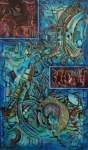 Pinting: Mix media Unique représentation of Albert Einstein by Ivaldo Robles. This is an original work. Height 10" x Width 10" x Depth 1" Year Produced: 2014 Inventory ID IR_0003 Status: All Galleries Price: $600.00 Narrative: Painted on glass and canvas, its an abstract representation of Einsteins profile, with about half inch, the glass is separate from the canvas, giving it the effect of 3d and creating shadows in the background that at the same time will create movement on the image. The painting comes with a dark frame. |