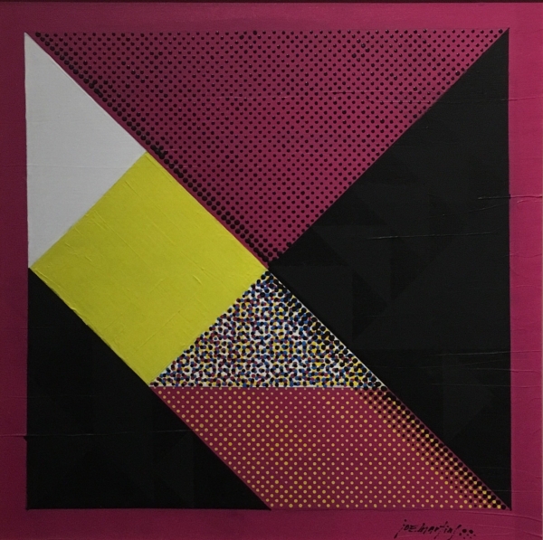 Painting: Acrylic on canvas The tangram in Chinese literally means seven boards of skill is a dissection puzzle consisting of seven flat shapes called Tamez which are put together to form shapes. The objective of puzzle is to form a specific shape, given only an outline or silhouette, using all seven pieces, which may not overlap. It is reputed to have been invented in China during the song Dynasty, and then carried over to Europe by trading shifts in the early 19th century. It became very popular in Europe for a time then, and again during World War 1. It is one of the most popular dissection puzzles in the world. A Chinese psychologist has termed the 10 a gram the earliest psychological test in the world. This is an original work. Height 20" x Width 20" Year Produced: 2016 Inventory ID JM_0002 Price: $668.00 None |
