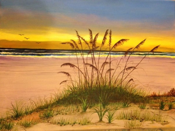 Painting: Acrylic on Canvas Sea Oats on Sandy beach at dawn! This is an original work. Height 12" x Width 16" Year Produced: 2014 Inventory ID SH_0149 Price: $260.00 Inspired by a students wish... Turned into my passion. |