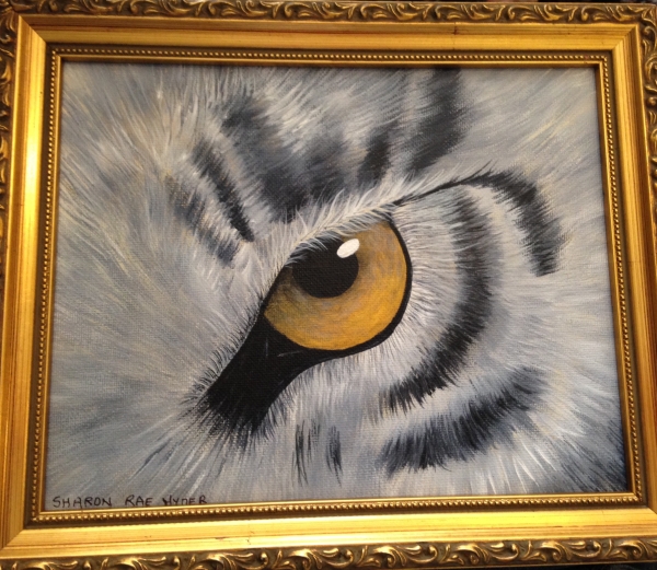 Painting: Acrylic A white tiger eye up close... This is an original work. Height 9.5" x Width 12" Year Produced: Unknown Inventory ID ACWG10 Status: Sold (public) Price: $75.00
