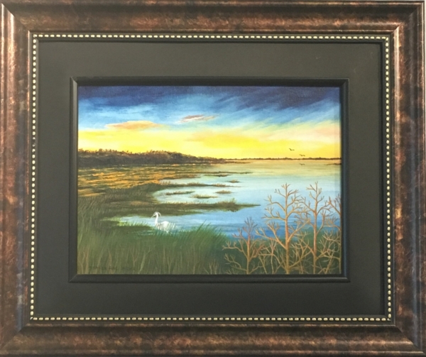 Painting: Acrylic on framed canvas Morning on a beautiful peaceful Florida marsh. This is an original work. Height 11" x Width 14" Year Produced: Unknown Inventory ID SH_0160 Status: All Galleries Price: $175.00