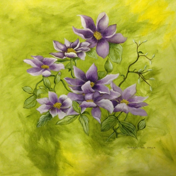 Painting: Acrylic on Canvas Lavender flowers among leaves and willows This is an original work. Height 25" x Width 25" Year Produced: Unknown Inventory ID SH_0161 Price: $275.00 This was a project with a student.. I was able to elaborate on the idea she brought in. |