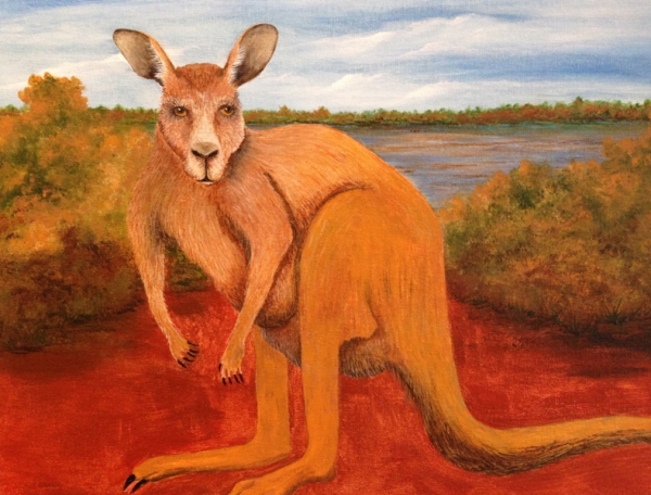Painting: Framed Acrylic on Canvas Board A Kangaroo ready to fight... This is an original work. Height 12" x Width 16" Year Produced: Unknown Inventory ID SH_0193 Price: $175.00 This was a class and a challenge for both of us. |