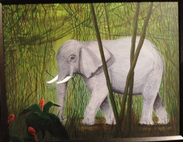 Painting: Acrylic on canvas Framed A young elephant looking for his mother. This is an original work. Height 11" x Width 14" Year Produced: Unknown Inventory ID SH_0216 Price: $0.00 A project for a class of teens. |