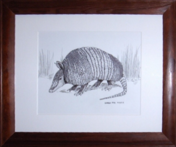 Drawing: India Ink A detailed drawing of an armadillo This is an original work. Height 8" x Width 10" Year Produced: Unknown Inventory ID SH_0224 Price: $25.00 Prints are still available |