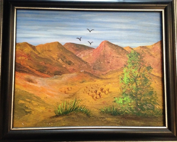 Painting on canvas board: Acrylic on canvas Framed Another beautiful landscape of Colorado This is an original work. Height 11" x Width 14" Year Produced: Unknown Inventory ID SH_0226 Price: $50.00 Done for a class |