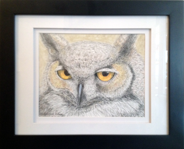 Drawing: Charcoal and Pastel Portrait up close of a wise looking owl. This is an original work. Height 8" x Width 10" Year Produced: 2012 Inventory ID SH_0005 Price: $80.00 Inspired by the eyes of an owl and the beauty of its character. |