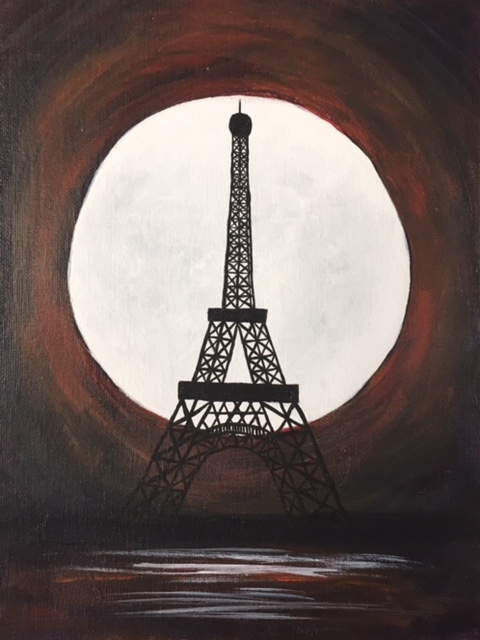 Painting: Acrylic on Canvas Board The Eiffel Tower in the Full Moon. This is an original work. Height 12" x Width 9" Year Produced: Unknown Inventory ID SH_0280 Price: $35.00 This is a painting for Art Class and a Wine Glass Art Party. Join us and make one for yourself. |