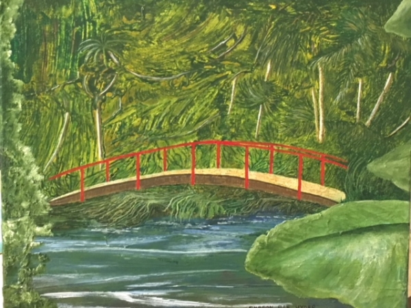Painting: Acrylic on Canvas A Bridge over a stream This is an original work. Height 0" x Width 0" Year Produced: Unknown Inventory ID SH_0286 Price: $75.00 Amys Bridge in the lush Botanical Garden in St Croix US Virgin Islands |