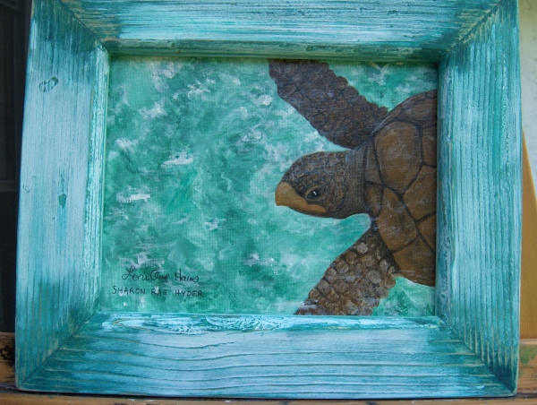 Painting: Acrylic on Canvas a young turtle heading out to the ocean. This is an original work. Height 9" x Width 12" Year Produced: Unknown Inventory ID SH_0032 Price: $90.00 This cute turtle with a shabby sheek frame helps you feel the excitement of going into the sea. |