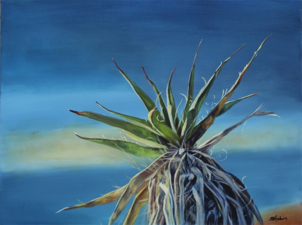 Painting and Limited Edition Reproductions: Oil on Canvas and Prints Sharply lit cactus against blue sky, yellow band in background. This is an original work. Height 18" x Width 24" x Depth 2" Year Produced: Unknown Inventory ID SH_0026 Price: $1,600.00 The strong lighting on this plant revealed contrasts of light and dark, sharp and soft, full and dry - all of it set beautifully against the clear blue of a revelatory sky. |