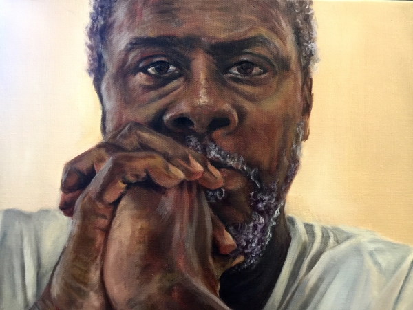 Painting: Oil on Canvas Man staring soulfully with hands folded This is an original work. Height 14" x Width 20" x Depth 2" Year Produced: Unknown Inventory ID SH_0028 Status: All Galleries Price: $1,000.00