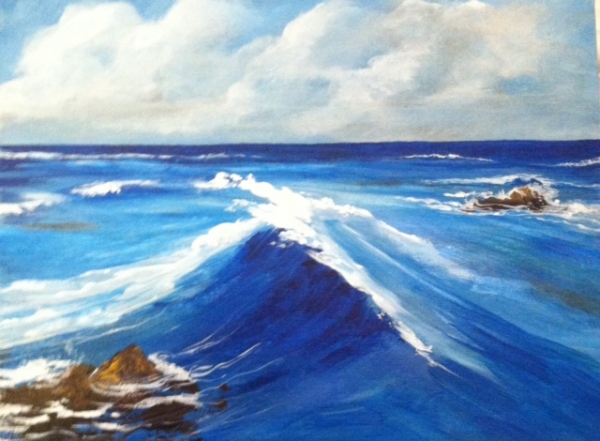 Painting: Acrylic on Canvas The churning sea and a wave on the rocks This is an original work. Height 11" x Width 14" Year Produced: 2013 Inventory ID SH_0074 Price: $0.00 This was a class on waves and water and I felt inspired.. Thus The Wave |